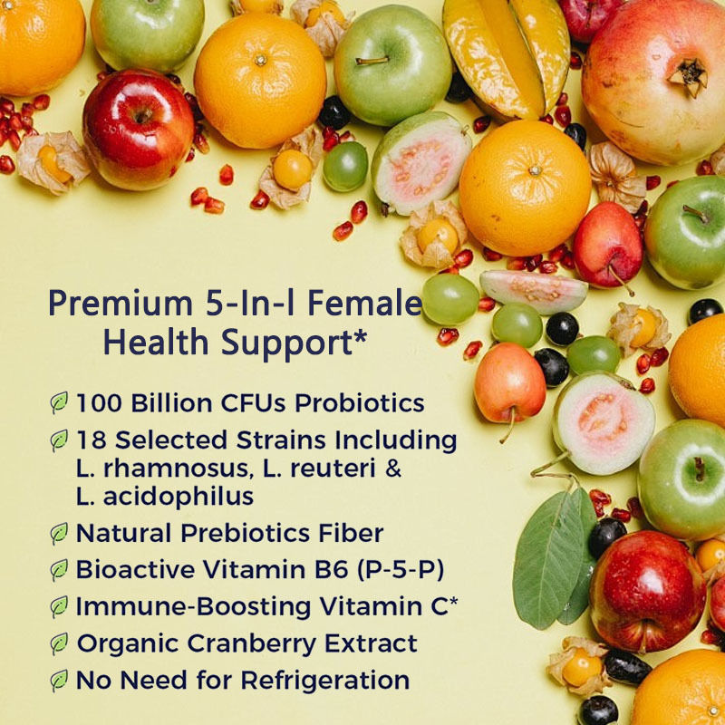 মহিলা প্রোবায়োটিক ব্লেন্ড, অর্গানিক ক্র্যানবেরি নির্যাস, ভিটামিন সি, ভিটামিন বি৬ |