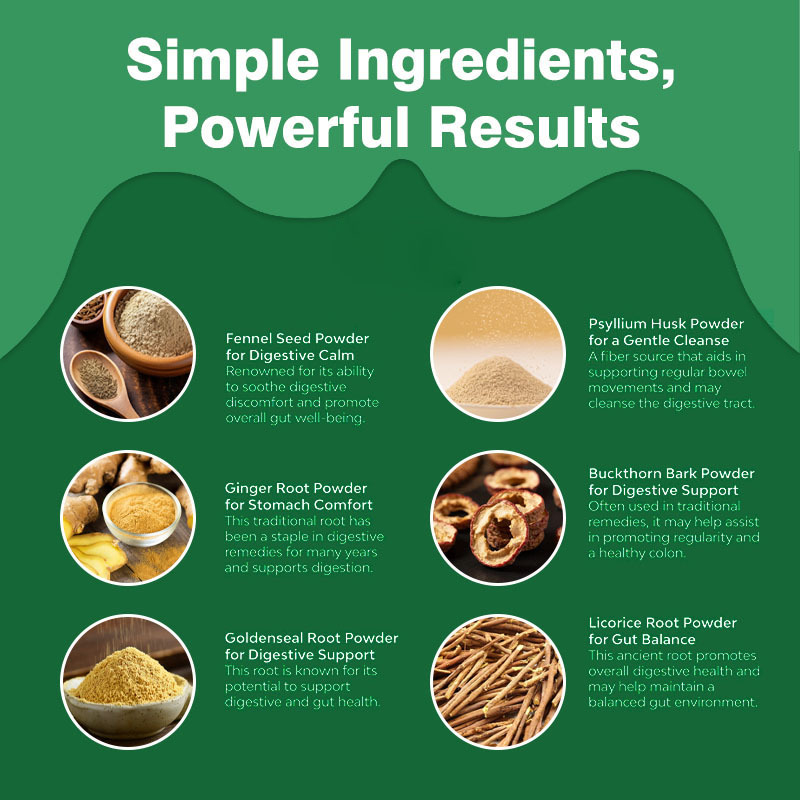 | প্রধান উপাদান | মৌরি বীজের গুঁড়ো, আদার গুঁড়ো, ইসুবগুলের ভুসি | |