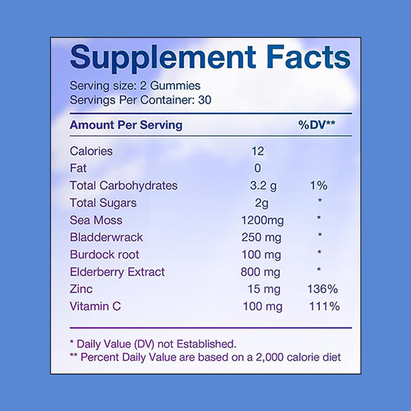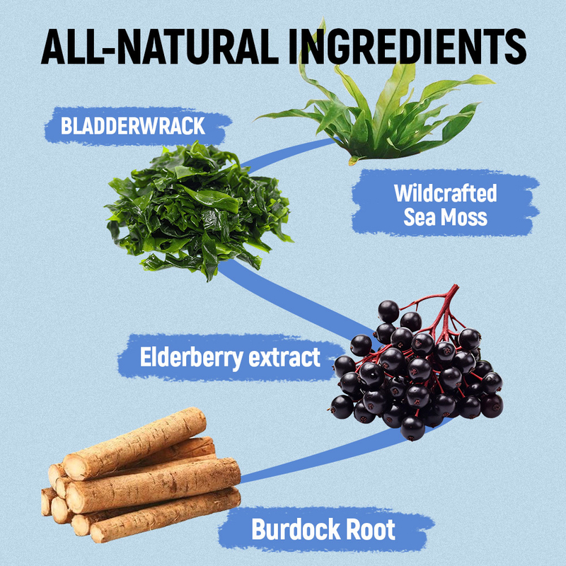 সমুদ্রের মোস, ব্লেজারওয়াক, বার্ডক রুট, এল্ডারবেরি এক্সট্র্যাক্ট, জিংক, ভিটামিন সি