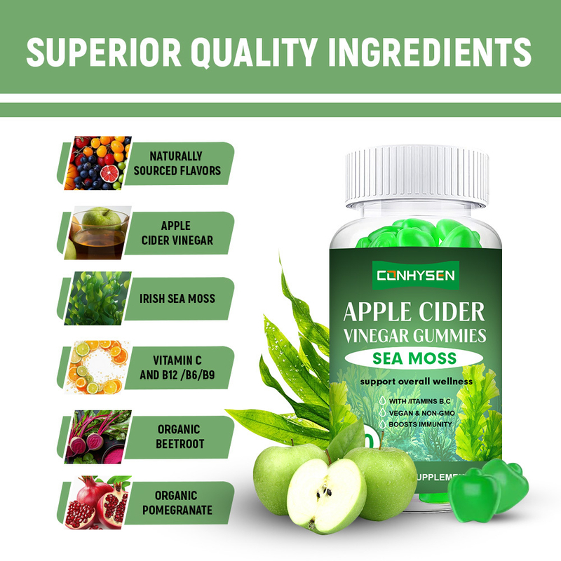 জৈবিক আইরিশ সমুদ্রের মোস, আপেল সিডার ভিনেগার, ভিটামিন সি, ভিটামিন বি৬, ভিটামিন বি৯, ভিটামিন বি১২, জৈবিক আদা পাউডার, জৈবিক বিট রুট