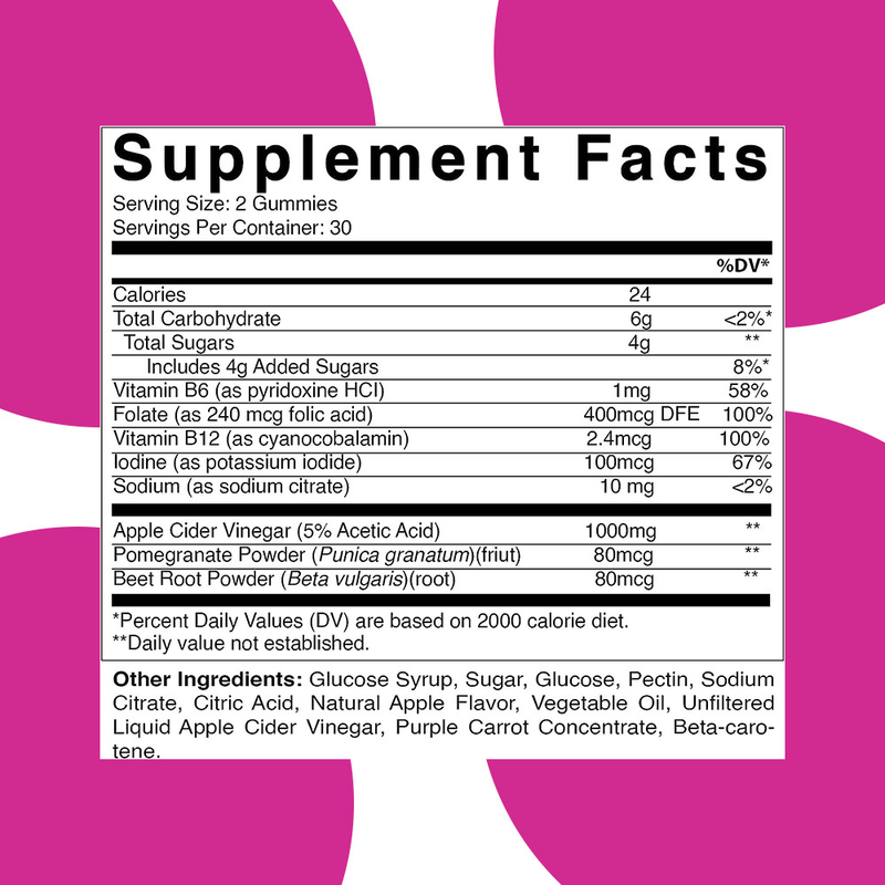 অ্যাপল সিডার ভিনেগার, ভিটামিন বি 6, ফোলেট, ভিটামিন বি 12, আয়োডিন, সোডিয়াম, ডালিম পাউডার, বিট রুট পাউডার
