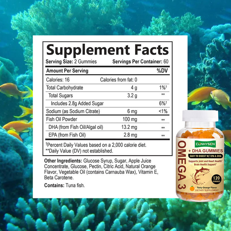 কারখানার কাস্টমাইজেশন ওমেগা ৩ গামি ডিএইচএ দিয়ে হাড়ের যৌগিক স্বাস্থ্যকে সমর্থন করে