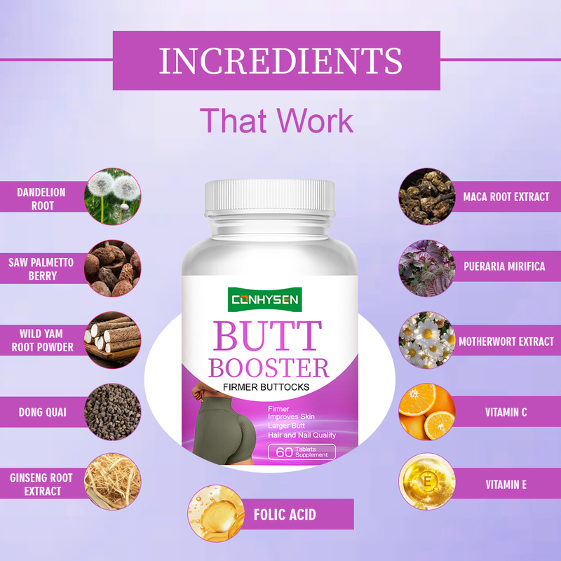 Butt Booster ট্যাবলেটগুলিগুয়াংডং কাংশেং ফার্মাসিউটিক্যাল টেকনোলজি কোং লিমিটেড।বিভিন্ন ভিটামিন এবং অ্যান্টিঅক্সিডেন্ট উপাদান সমৃদ্ধ। তারা ভিতর থেকে বাইরে ত্বকের অবস্থা উন্নত করতে পারে। পণ্যের সক্রিয় পদার্থ ত্বরান্বিত ত্বকের কোষের পুনর্নবীকরণ করতে পারে,মেটাবলিজমকে উৎসাহিত করে, বিষাক্ত পদার্থ নির্মূল করতে সাহায্য করে, এবং ত্বক মসৃণ এবং আরো সূক্ষ্ম করে তোলে। বিশেষ করে কমলা খাঁজ টিস্যু এবং রুক্ষতা যেমন সমস্যা লক্ষ্য করে যা প্রায়ই গল্ফ ত্বকে ঘটে,আমাদের পণ্য কার্যকরভাবে এই অবস্থার উন্নতি করতে পারেন.