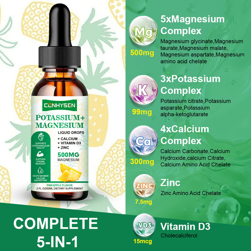 Potassium Magnesium Liquid Drops from Guangdong Kangsheng Pharmaceutical Technology Co., Ltd. uses scientific proportions to provide key nutritional support for the heart. Magnesium can help maintain normal heart rhythm, while potassium ions participate in electrical signal conduction in myocardial cells. The synergistic effect of the two can effectively improve cardiovascular function. Appropriate supplementation of potassium and magnesium can reduce the risk of arteriosclerosis and reduce the incidence of cardiovascular disease.