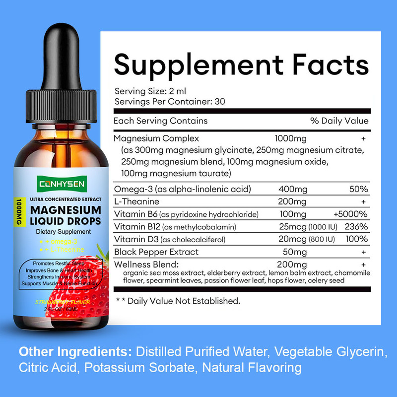 Magnesium Liquid Drops with Omega 3 L Theanine Stress Relief Sleep Support Wholesale Custom