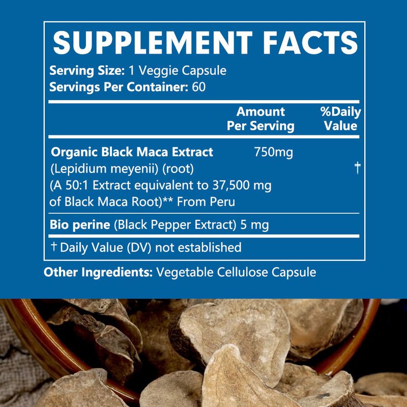 প্রস্তুতকারক কাস্টম কালো ম্যাকা সর্বোচ্চ শক্তি স্ট্যামিনা প্রাণবন্ততা সমর্থন