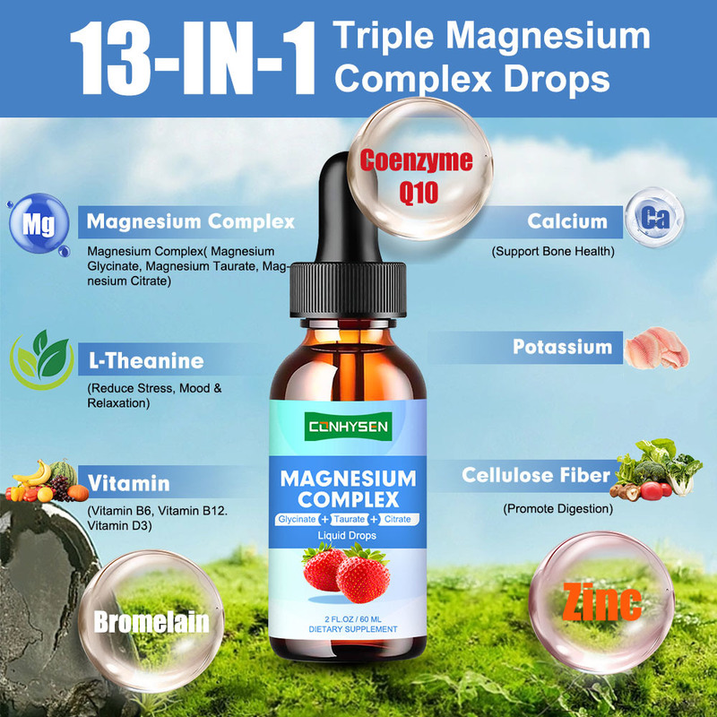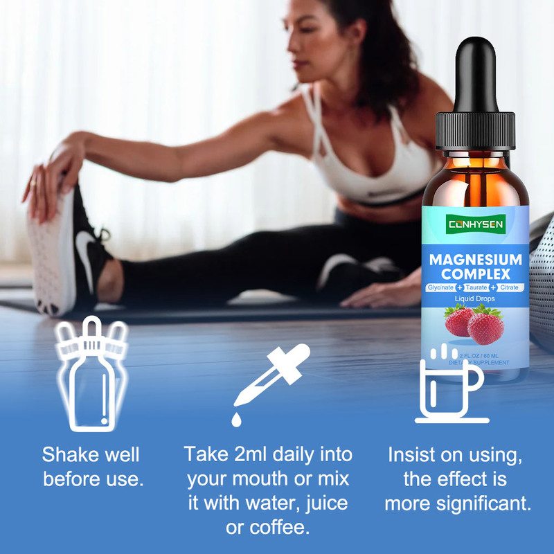 ট্রিপল ম্যাগনেসিয়াম কমপ্লেক্স তরল ড্রপস গ্লাইসিনেট ঘুম পেশী স্নায়ু সমর্থন পাইকারি কাস্টম